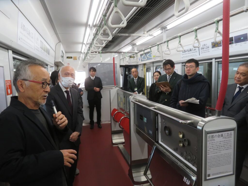 このたび、京都市地下鉄烏丸線新型車両20系の新型車両全9編成の両先頭車「おもいやりエリア」におきまして、6人の若手職人によって「金属で遊ぶ」をテーマにし、それぞれの技法や素材を用いたオリジナル作品を制作しました。